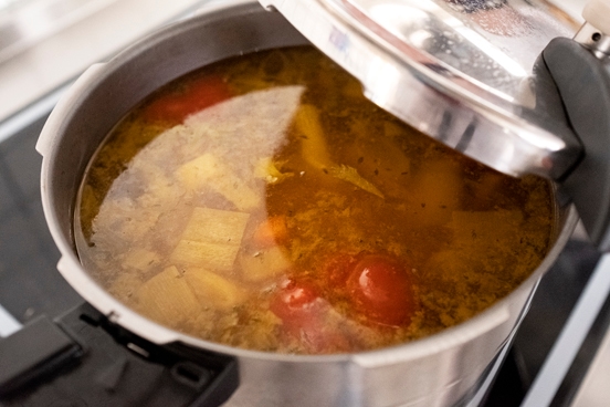 Doordat je onder hoge druk kookt trek je alle smaak uit het vlees en uit de karkassen zonder dat de bouillon blind slaat.