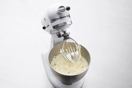 - Roer na het kloppen de room goed door, om de niet opgeklopte room van de bodem van de schaal door de geklopte room te mengen