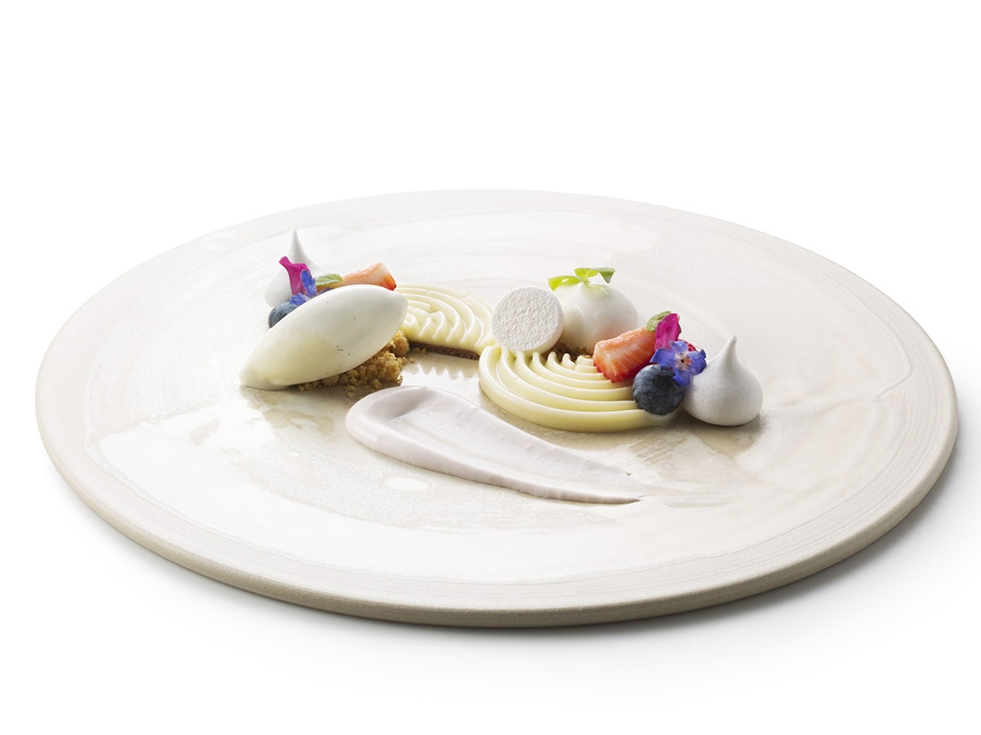 Dania główneZ cimi di rapa, bulionem z czarnego czosnku, kremem mascarpone z bergamotki