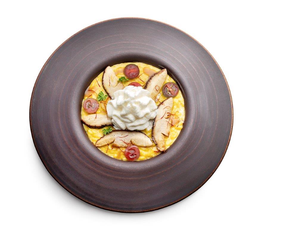 Dania główneZe słupkami szafranu, kremem mascarpone i borowikami