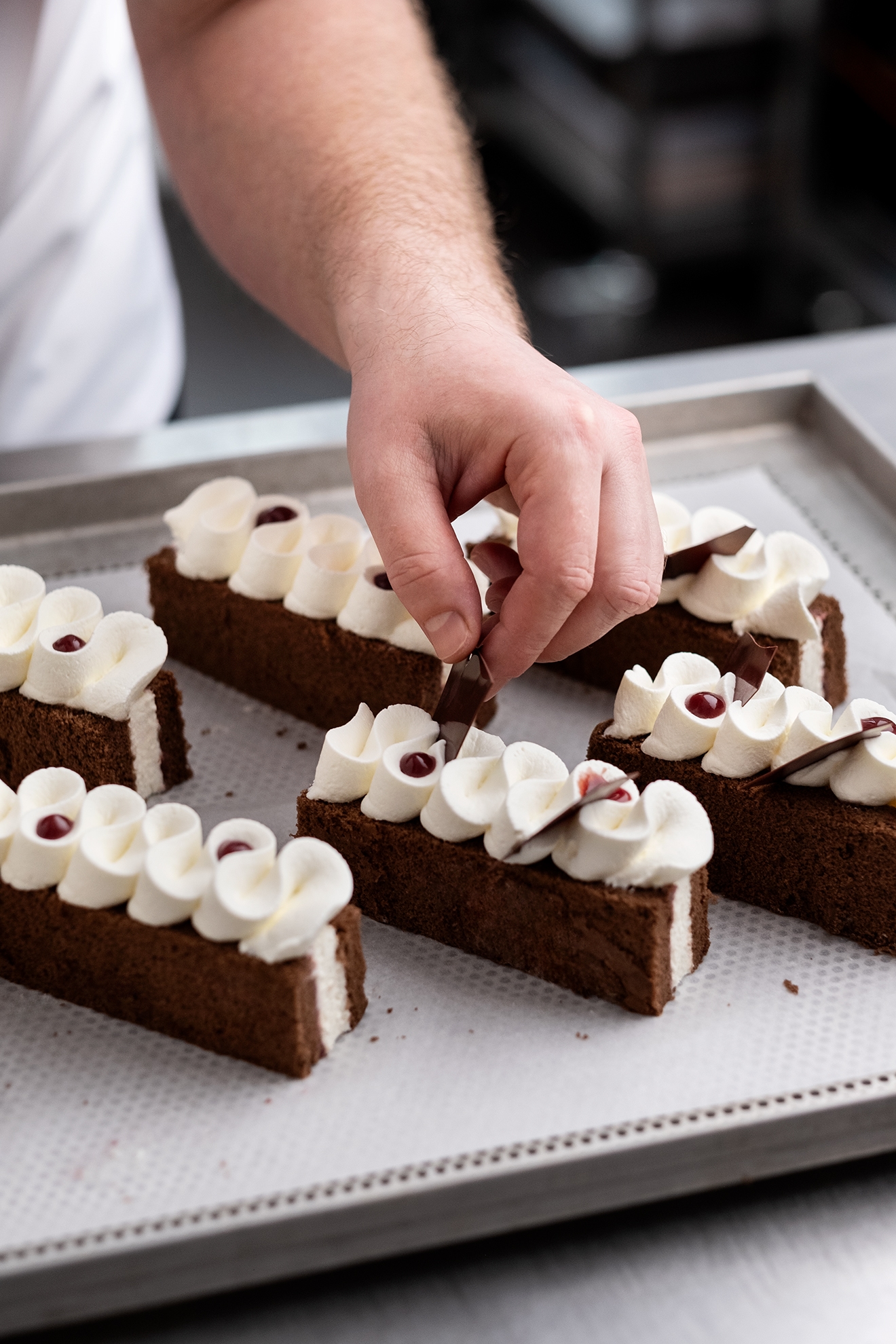 Ciasta i tartyInspirowane klasycznym ciastem Opera, ale przebudowane na smak malin i werbeny.