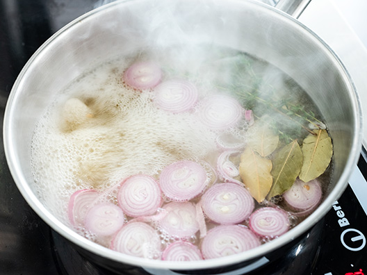 Zrób gastrique redukując o 2/3 objętości białe wino i ocet winny z szalotkami i ziołami.