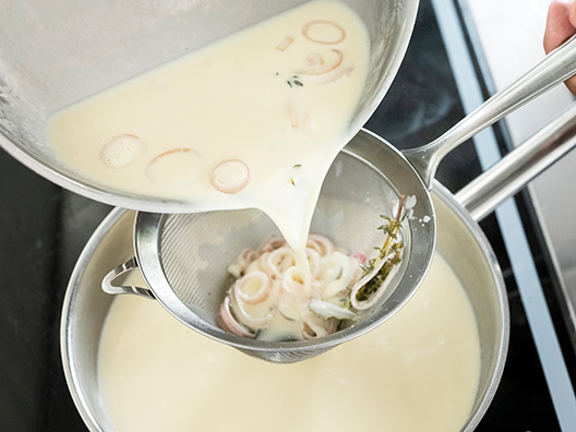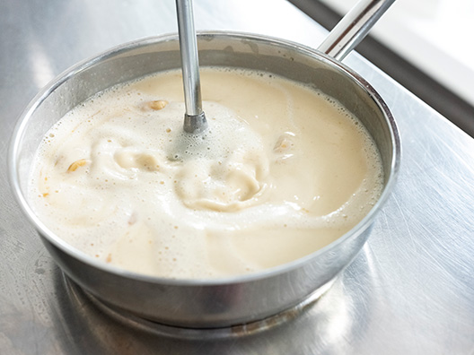 - To właśnie dodatek maśła (Beurre monté) pozwala napowietrzyć sos do konsystencji pianki za pomocą blendera ręcznego.